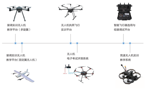 多元化教学硬件资源:为用户提供与低空经济、人工智能等前沿领域配套的完整教学实训设备体系,包含无人机、机器人、智能传感、高性能计算单元等先进硬件教具,可覆盖从基础认知、实操训练到项目研发的全流程教学需求,保障理论与实践深度融合。